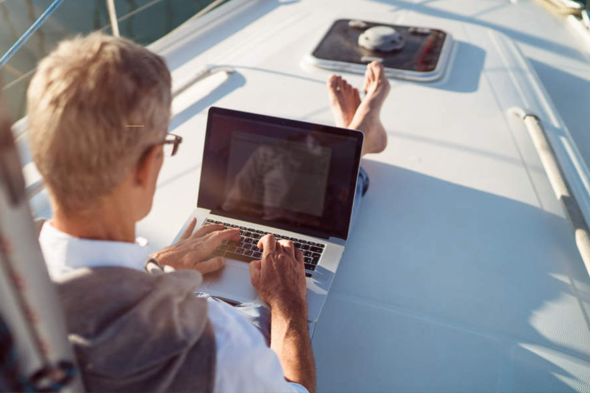 - Bild für „Anfahrt (Geschäftsmann mit Laptop auf seiner Yacht)“ – D’Action Images/ Shutterstock.com